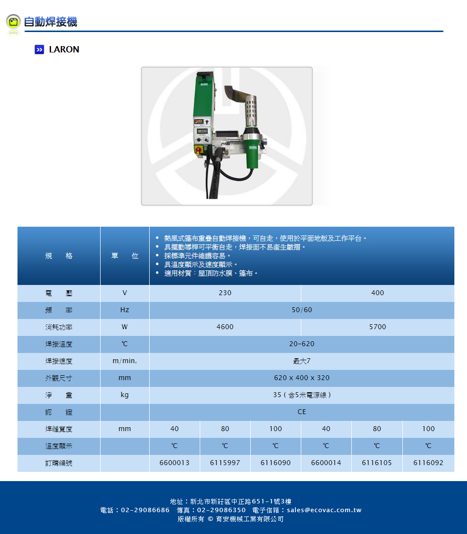 LARON 規格表