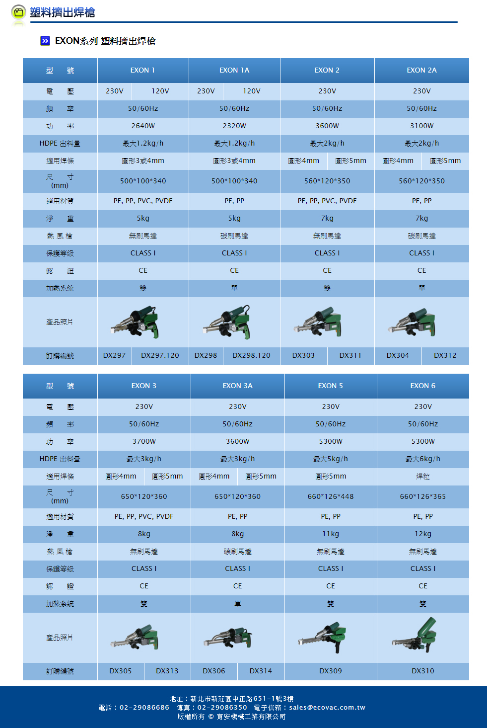 EXON系列 塑料擠出焊槍 規格表